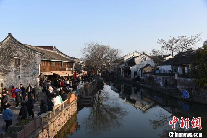 浙江宁波慈溪市鸣鹤古镇,始建于唐代开元年间,迄今已有1200多年历史,素有“鹤皋风景赛姑苏”的美誉。鸣鹤古镇依白洋湖,临五磊山,依山成街,因河成镇,镇边有寺,是名副其实的山水古镇。古镇主要由三条长街组成,是昔日三北的商肆繁华之地。2月11日,农历大年初二,鸣鹤古镇内张灯结彩,人气十足,不少游人来此感受江南水乡古镇之美,品尝当地特色美食,体验热闹的传统年味。(记者 范宇斌)