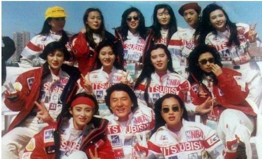 这张图片中,有香港著名女星,张敏、钟丽缇、吴君如、李嘉欣、王祖贤、叶倩文、刘嘉玲、梅艳芳、张曼玉、吴倩莲、邱淑贞等,这几乎涵盖了当时香港最顶尖的女星,但是成龙大哥与他们合影,依旧占据C位,真是太男人太霸气了。