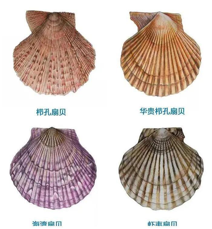 我国养殖的扇贝主要有四种,分别是我国原产的栉孔扇贝、华贵栉孔扇贝,以及从美国引入的海湾扇贝和日本引进的虾夷扇贝。