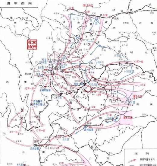 1949年11月,第二野战军在第四野战军的配合,向西南地区发动总攻。到1950年3月,共歼灭国民党军50万,彻底粉碎了国民党军依托西南一隅待机反攻的机会。