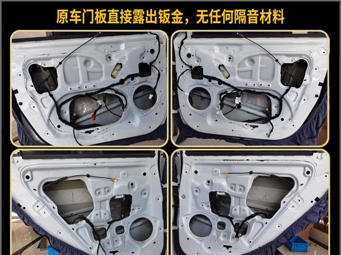 汽车音响改装前为了使音响效果能够得到更好地发挥,首先要对四门进行隔音减震改装。原车门板直接露出钣金,无任何的隔音减震材料。