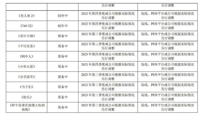此外表格中还给出了电影《749局》的计划,也是在今年第四季度上映,此外还有《英年早婚》《平行任务》《网中人》等作品,都还在筹备中,希望能早日和观众见面。