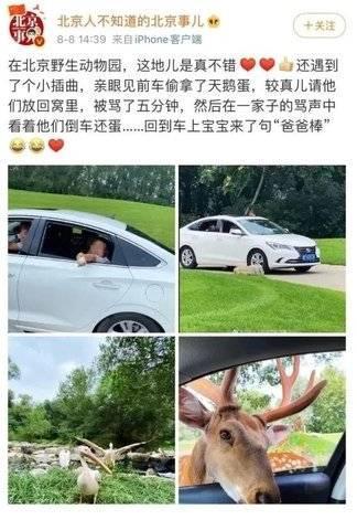 据@北京人不知道的北京事儿 报道:在北京野生动物园,亲眼见前车偷拿了天鹅蛋,较真儿请他们放回窝里,被骂了五分钟,然后在一家子的骂声中看着他们倒车还蛋……回到车上宝宝来了句“爸爸棒”。