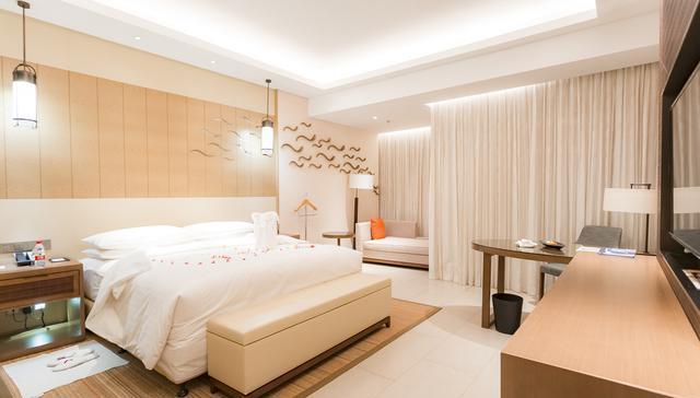 香水湾一带酒店很多,价格也比三亚来得实惠,这次选择的房型是富力万豪的海景房,价格700元一晚含双早,个人觉得这样的环境、相关配置下,6、7百的房费很具有性价比;房间外面便是香水湾大海,拉开窗帘即可感受“面朝大海,春暖花开”的度假生活。