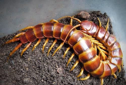 蜈蚣,身体由许多体节组成,每一节上均长有步足,故为多足生物。蜈蚣又名叫天龙、百脚虫、少棘蜈蚣、吴公、蝍蛆等,是一种有毒腺的、掠食性的陆生节肢动物。经常出现在潮湿的墙角、砖块下、烂树叶下、破旧潮湿的房屋中等,在夏天较为常见。