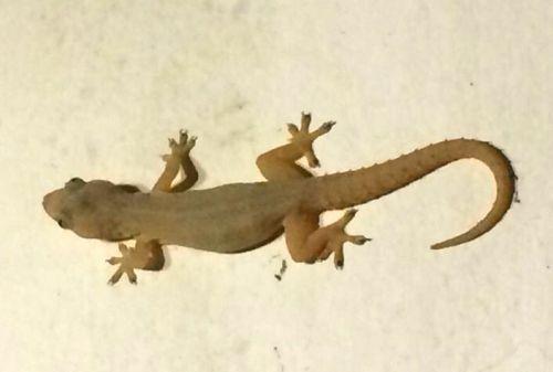 壁虎,体背腹扁平,身上排列着粒鳞或杂有疣鳞。指、趾端扩展,其下方形成皮肤褶襞,密布腺毛,有粘附能力,可在墙壁、天花板或光滑的平面上迅速爬行。壁虎昼伏夜出,夏秋的晚上,壁虎常出现在灯光照射的墙壁上、屋檐下或电杆上。