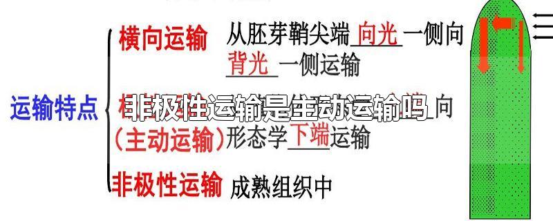 非极性运输不是主动运输。生长素在植物体内除了极性运输之外,在植物体中也发现存在被动的、在韧皮部中无极性的生长素运输现象,成熟叶子合成的生长素可能就是通过韧皮部进行非极性的被动运输。