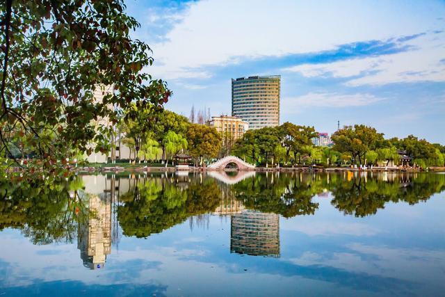 漫步月湖,仿佛走在婉约雅致的江南园林中,自然景色和人文景观相应和,绿的竹,青的砖,静的湖泊,动的飞鸟,如画景致让人沉醉。