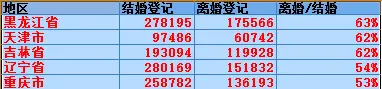 简单来讲就是有100对夫妻结婚,就有63对夫妻离婚,这些数据高到令人吃惊!