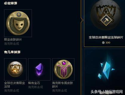 值得一提的是,总决赛限定法球开启后必定获得限定皮肤碎片,并且有几率获得稀有宝石。
