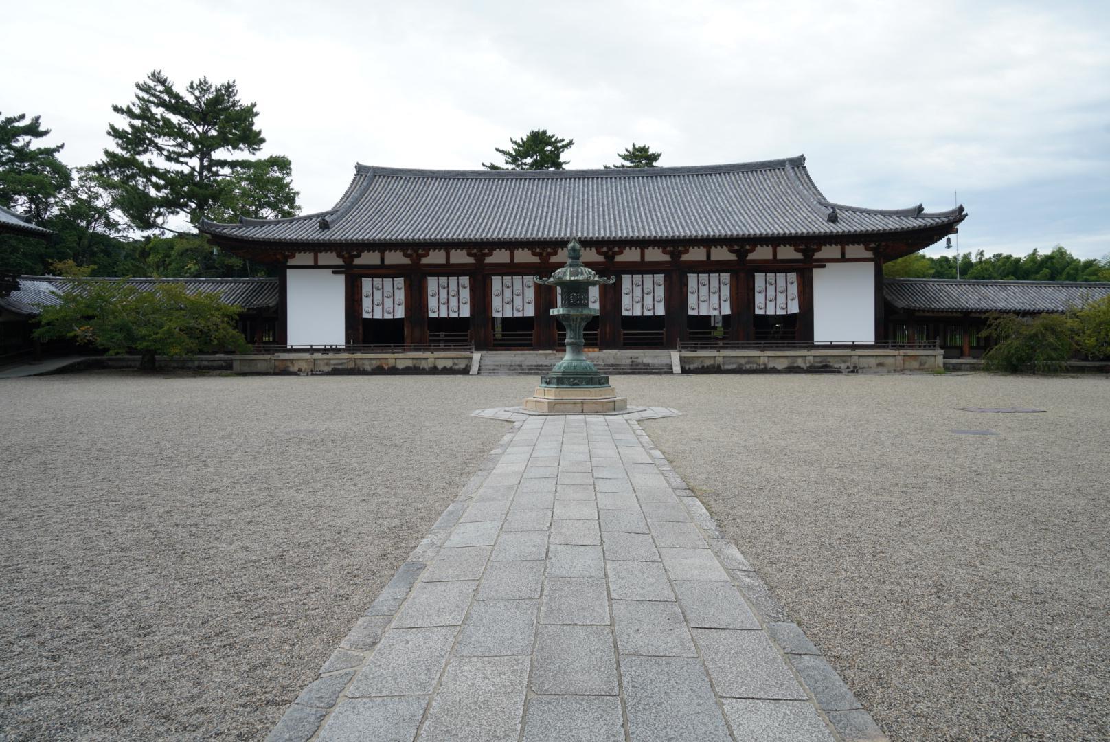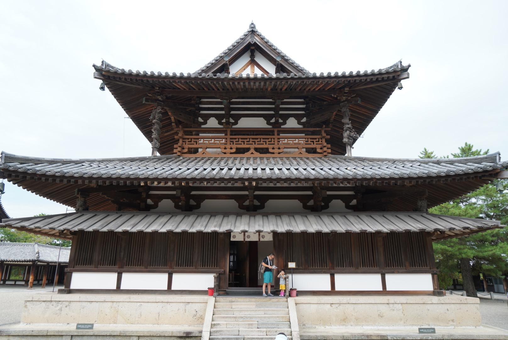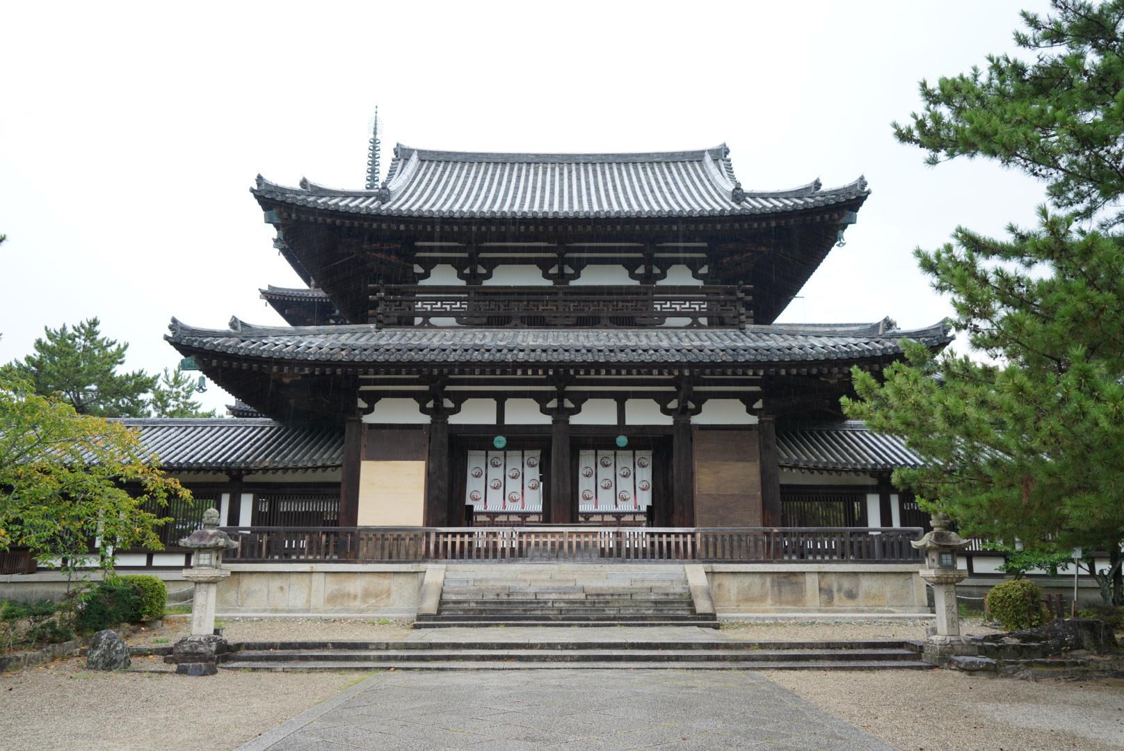 金堂(飞鸟时代)是寺庙主殿,内供奉为圣德太子建造的释迦三尊像(飞鸟时代)、为太子父君用明天皇建造的药师如来像(飞鸟时代)、为太子母君穴穗部间人皇后建造的阿弥陀如来像(镰仓时代,12世纪后——14世纪初),护卫这些佛像的四天王像是日本最古老天王像(白凤时代,7世纪后——8世纪初),金堂内还有平安时代(8世纪末——12世纪后)的吉祥天和毗沙门天;