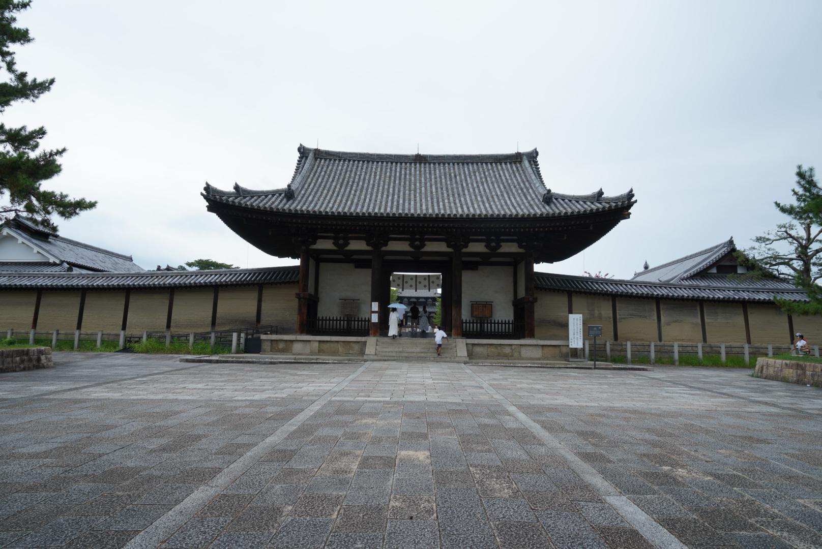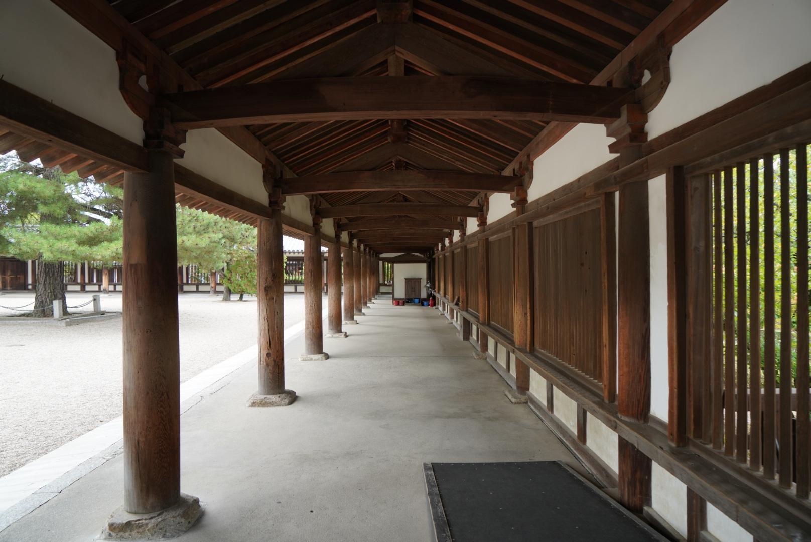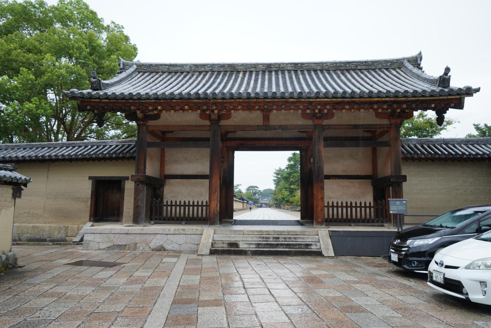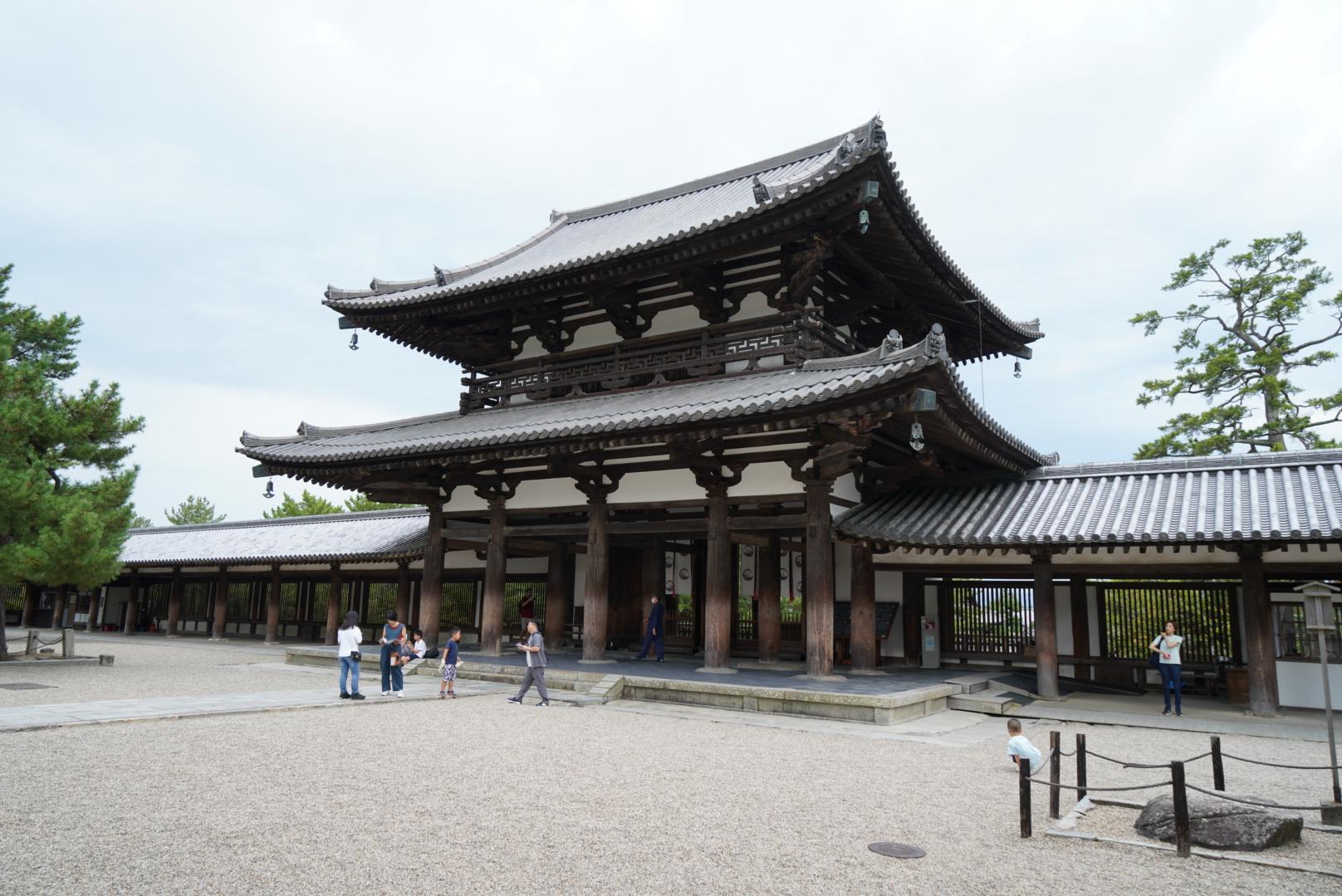 中门和回廊建于飞鸟时代(6世纪中——8世纪初),将整个院落围合,北端接藏经楼、大讲堂和钟楼,寺门左右的金刚力士塑于奈良时代(8世纪初——8世纪末);