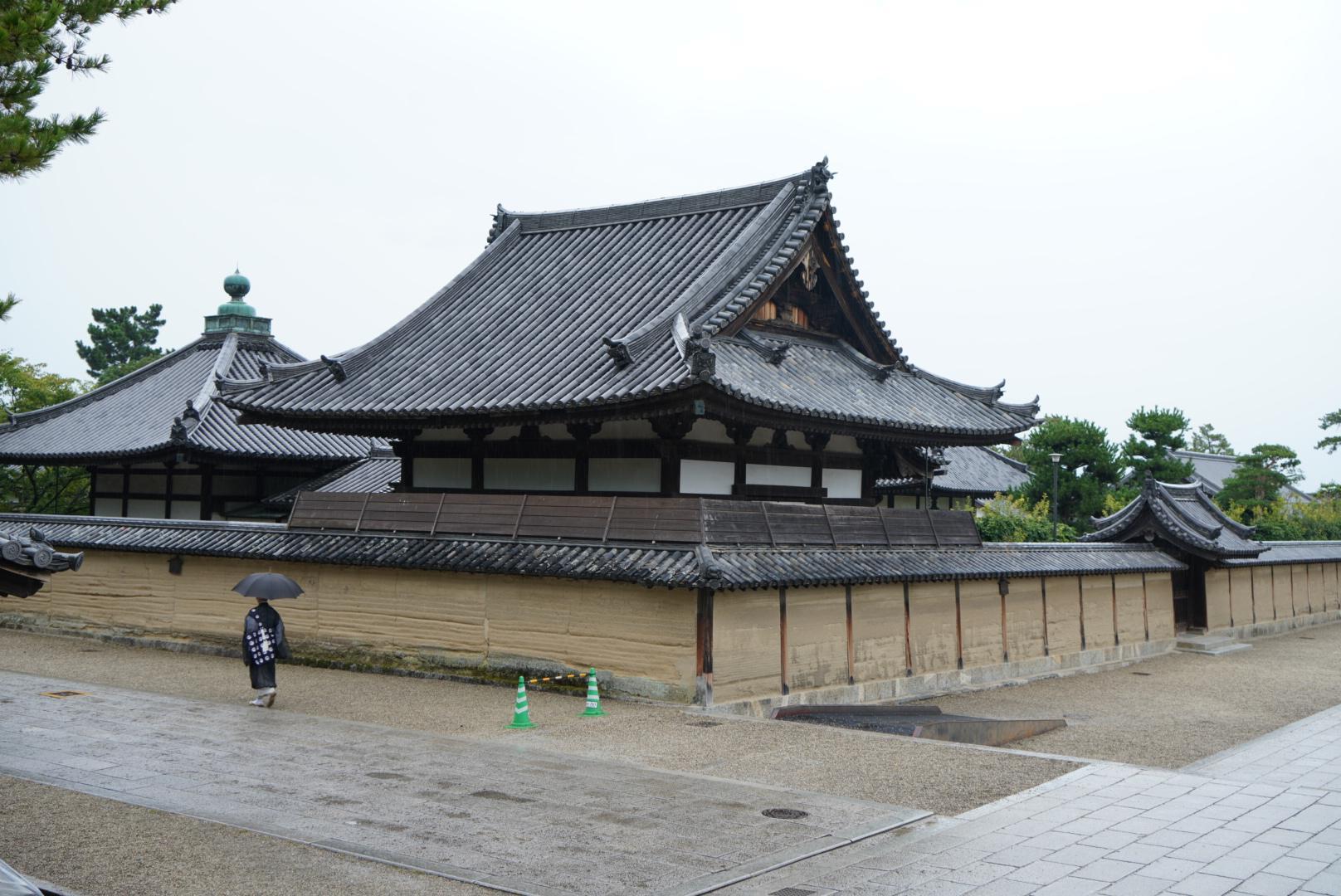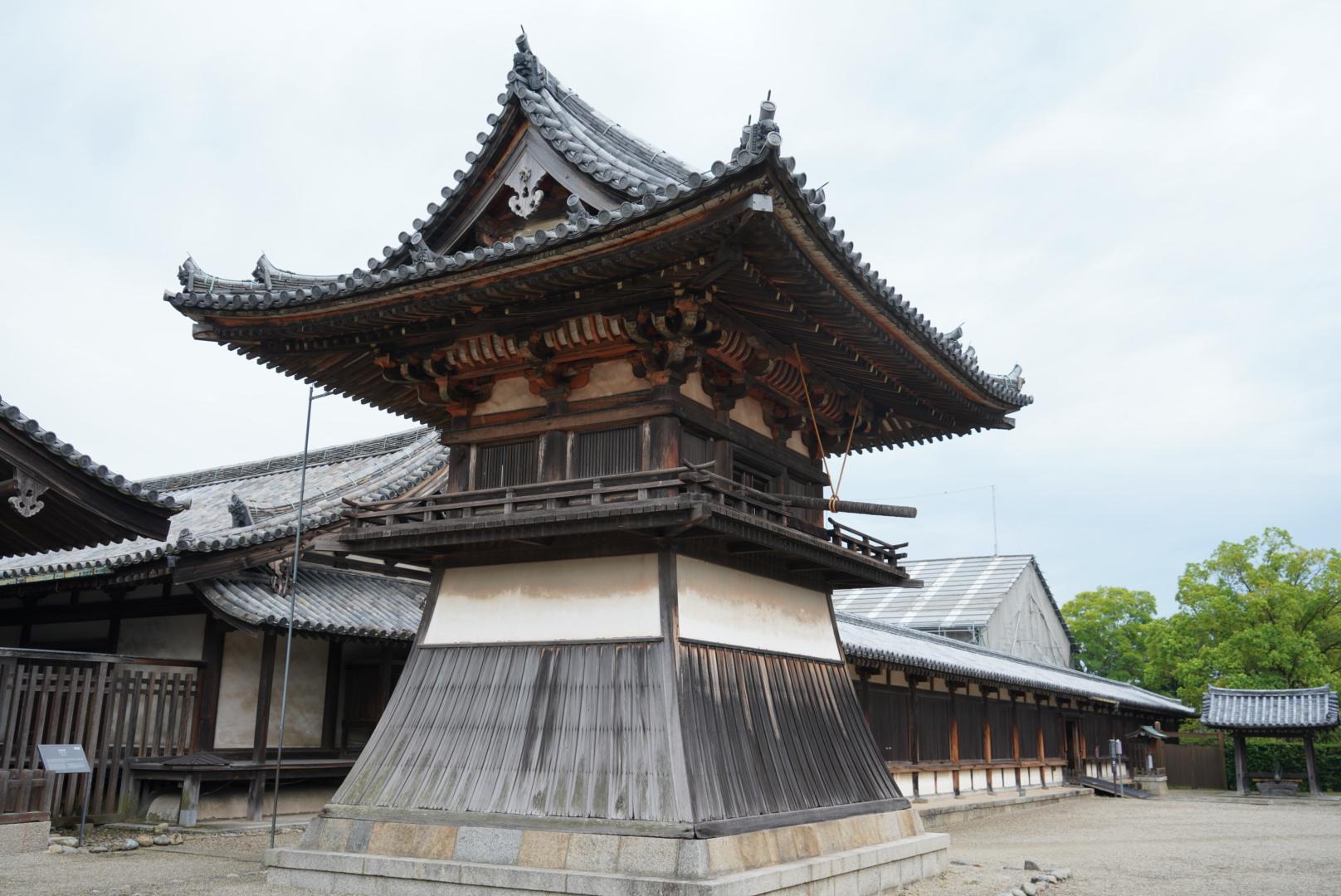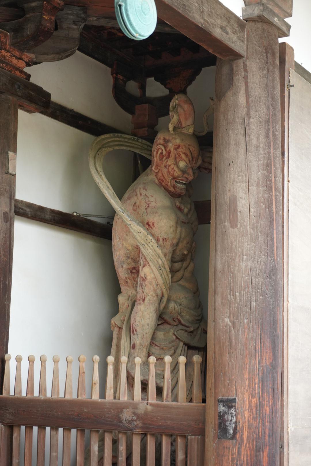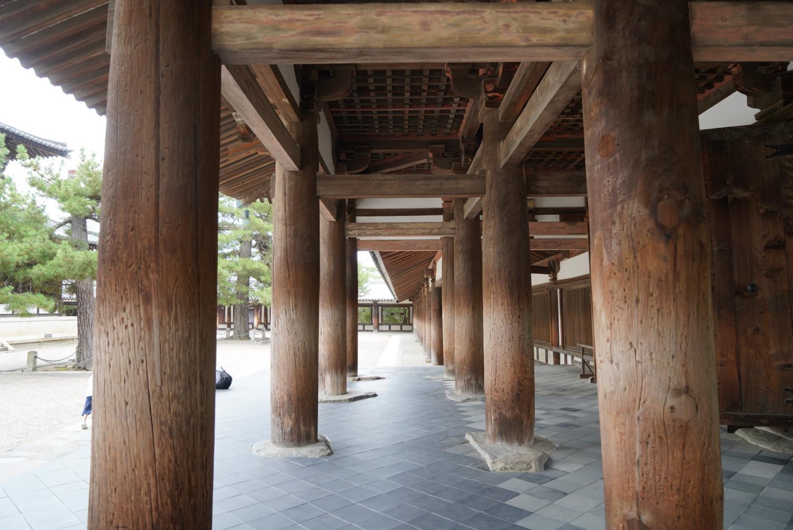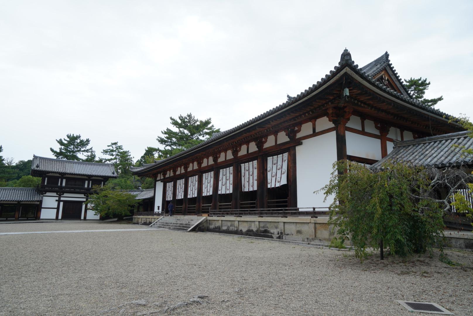 中门和回廊建于飞鸟时代(6世纪中——8世纪初),将整个院落围合,北端接藏经楼、大讲堂和钟楼,寺门左右的金刚力士塑于奈良时代(8世纪初——8世纪末);