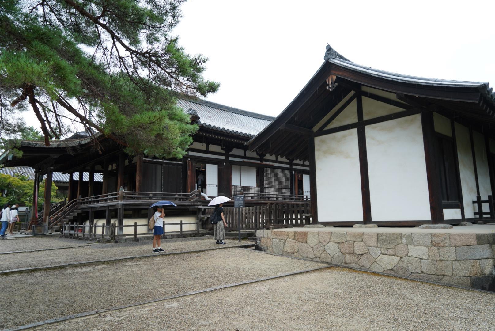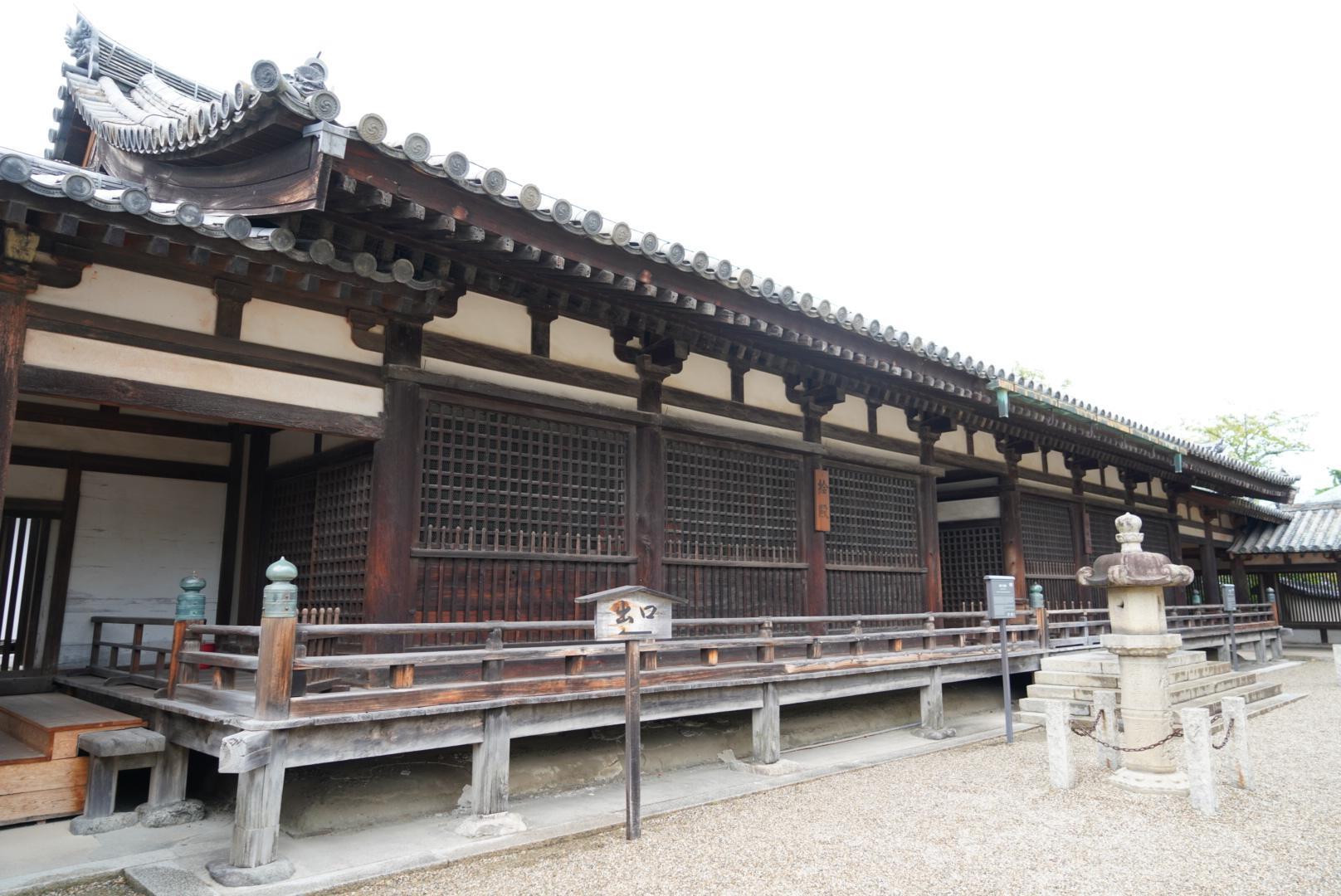 继续往东穿过奈良时代的东大门抵达东院,所在位置原是圣德太子居住的斑鸠宫。其核心是八角形、奈良时代的梦殿,内安置圣德太子等身秘佛救世观音像(飞鸟时代),此外还有平安时代至镰仓时代的观音像、圣德太子孝养像、道诠律师像等。东院还有奈良时期的传法堂和镰仓时期的舍利殿、绘殿和“裤裙腰形式”的钟楼。