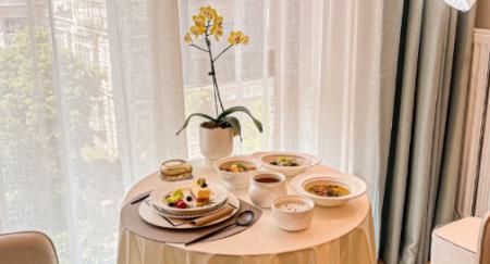 它的芦蒿香干和上汤时蔬寓意着如意吉祥和良辰美景。