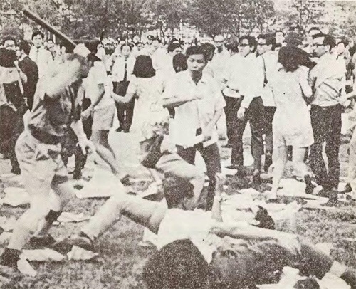 在此之前,这些学生常常被描绘为制造骚乱、破坏社会安宁的罪犯。例如,《华侨日报》报道保钓事件时称示威者“不听劝告”、“乱贴标语”、“非法”,但很少提及钓鱼台主权归属的问题。直到7月7日芦沟桥事件三十四周年纪念日,学生联合会举行了新的保钓活动。期间,两、三千名学生被警察包围,并打伤多名学生和两名记者,这一事件引起了公众的愤怒,也同时加剧了社会的反殖情绪,促使更多成年人加入这场爱国运动。