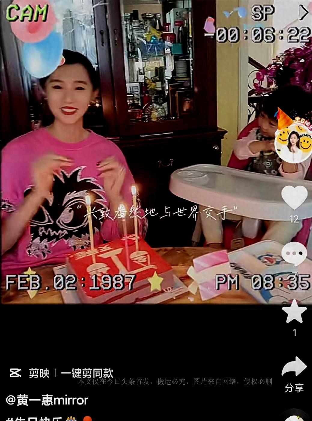 黄一惠戴着一顶生日皇冠,面前摆着一个精致的生日蛋糕。老公和女儿们用心准备的庆生活动让她开心不已,她脸上始终挂着灿烂的微笑。这幅画面展示了她幸福的家庭生活,让人们对她的生活充满了祝福。
