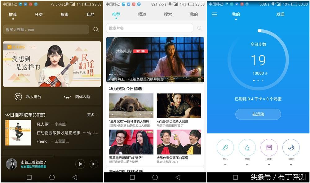 系统自带音乐播放器和视频播放器,不仅支持本地播放,而且还支持在线播放,其中的在线音乐资源来自于虾米音乐,在线视频资源大多来自于优酷视频,资源还是比较丰富的。手机中还内置了“运动健康”功能,可以将手机变身为计步器,记录我们日常生活在中的运动量,当然运动的时候必须要带着手机。