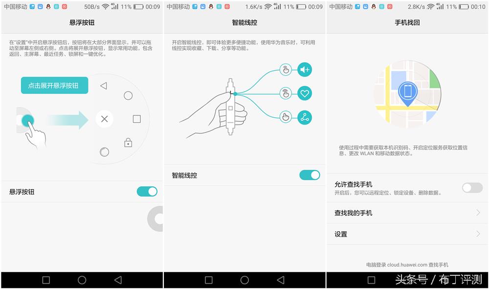 在EMUI 4.1系统中还有很多智能辅助功能,比如悬浮按钮、手势控制、单手操作、智能线控和定时开关机等功能,功能方面还是很丰富的。