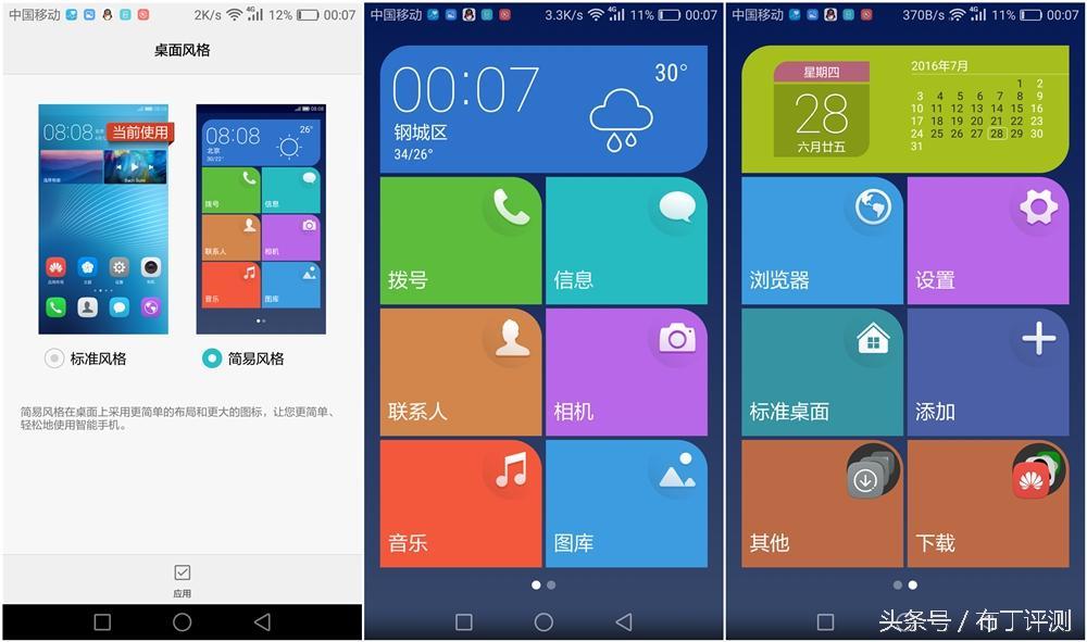 在系统中还有个“简易风格”选项,直接选择应用即可,无需手机重启,切换为“简易模式”之后,系统界面应有就会以大图标风格显示,这个比较适合家中的老年人使用。