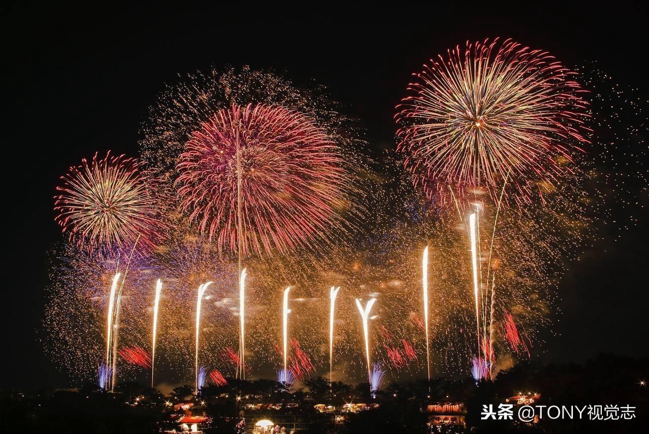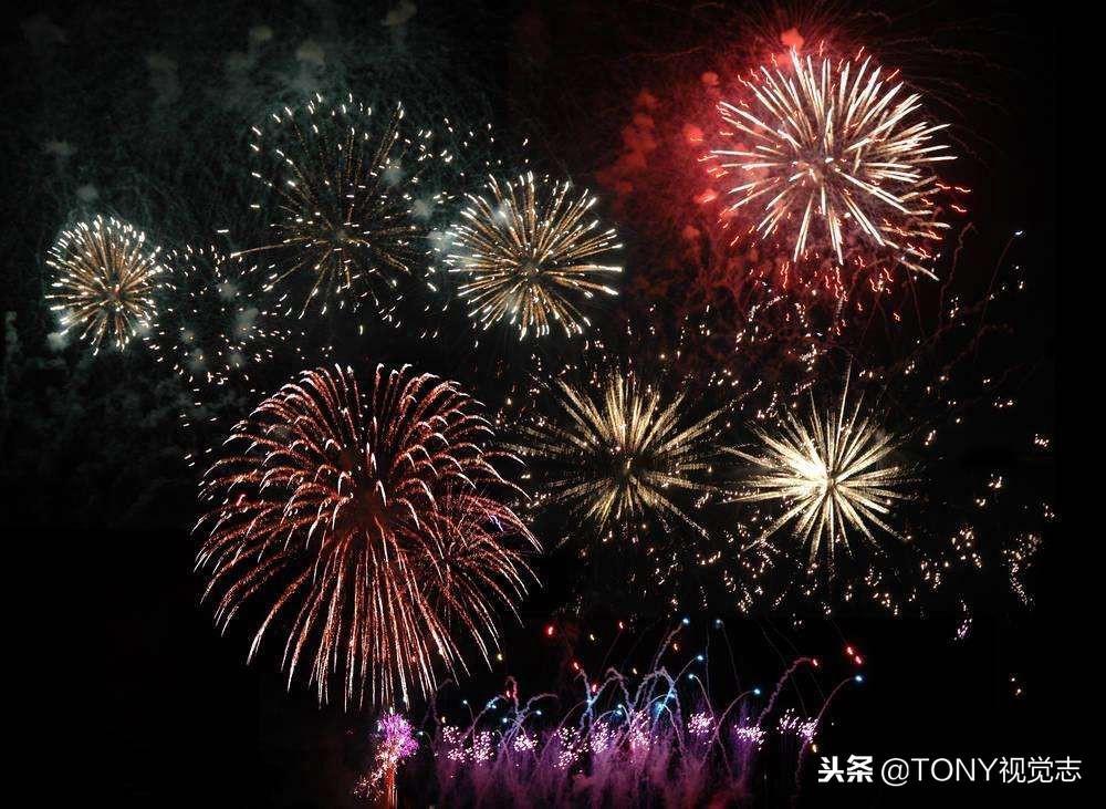 拍烟花要注意手动控制快门线来控制快门速度、光圈F8-F16、ISO100、手动对焦、构图切忌倾斜水平线,有广角镜头更好。