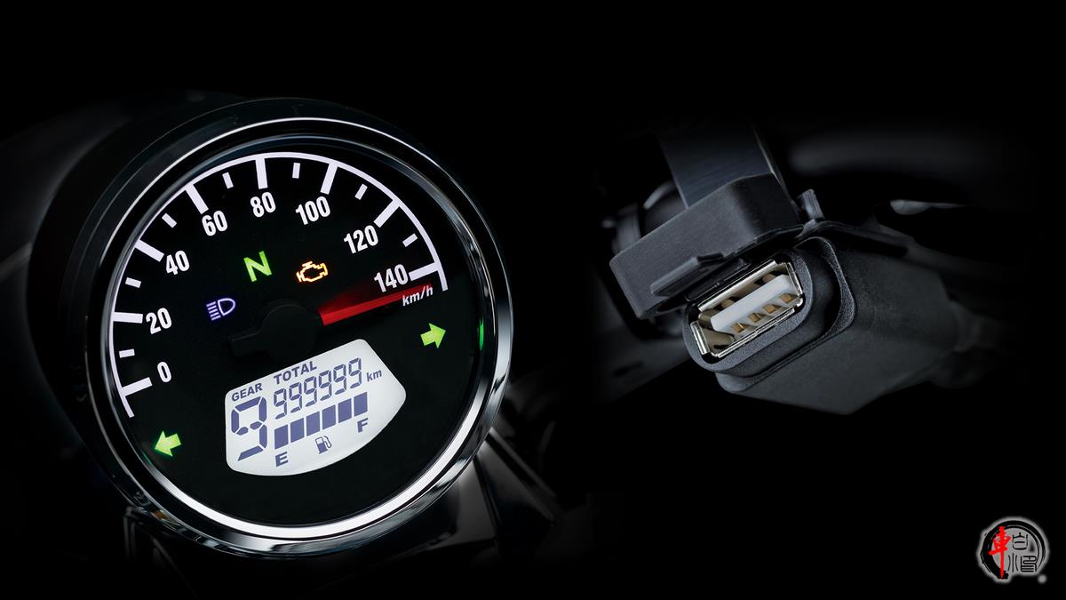 车辆仪表也采用了全新设计,取消了原本纯机械式双圆指针仪表,取而代之采用了LCD液晶+机械指针组合仪表,也算是与时俱进的表现,并在手把位置加装了USB充电接口,实用性方面得以大大提升。