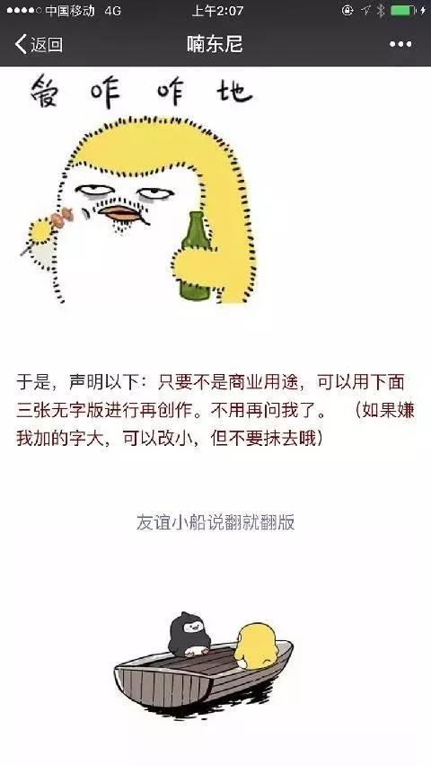 “喃东尼”漫画走红后,不少网友在原版基础上进行二度创作,并最终造成了风靡朋友圈的”友谊小船说翻就翻“现象。