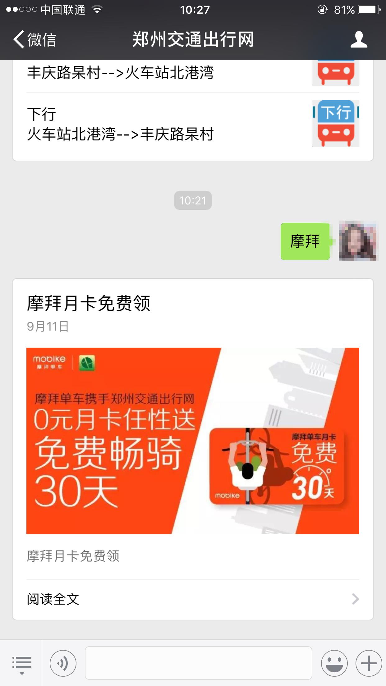 郑州摩拜单车可以免费骑一个月!快看怎么操作: