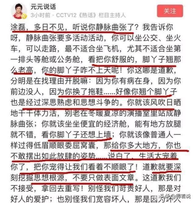 央视女主持元元微博怼了涂磊“举止不雅”,背后的逻辑是怎样的?