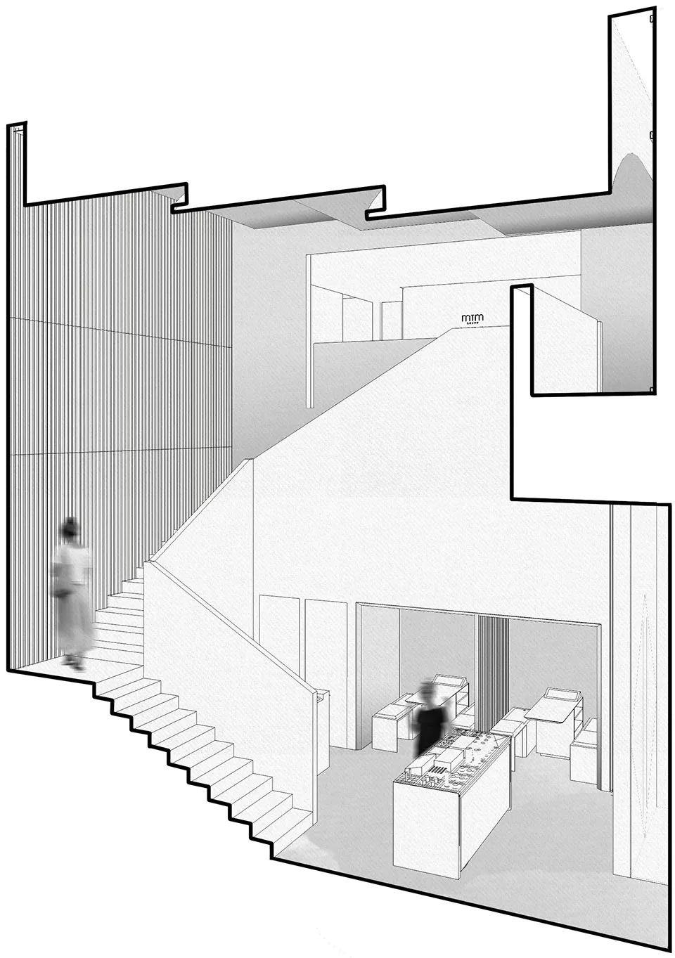 MDO所为香港护肤品牌MTM设计的全新理疗spa是一个由一座轻微弯曲的楼梯引入的隐秘宝地。这座坐落在成都太古里,占地400平方米的SPA有着两个主要功能。首层为零售空间,顾客可以通过MTM的咨询专家进行皮肤测试,并且得到定制护肤产品的推荐。
