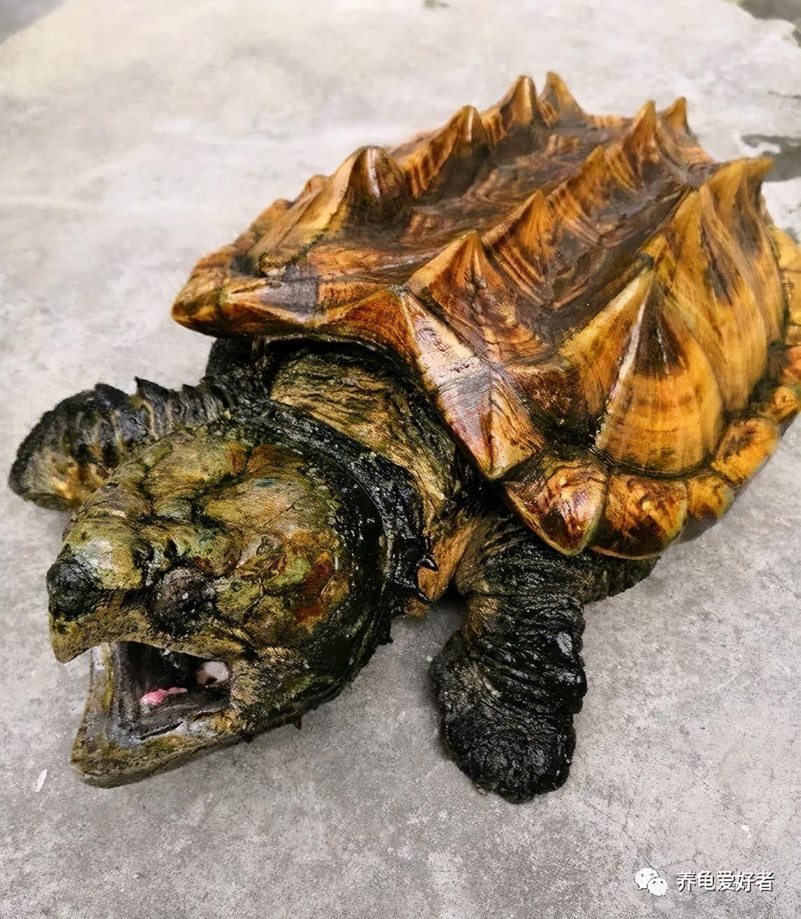 3、大鳄也属于高度水栖类的龟,平时也是很少会上岸活动的,最多也是离自己所生活的水域很近的距离活动。不过,大鳄依然需要阳光的洗礼,它可能不喜欢爬上晒台或者陆地上晒背,但有时候会漂浮在水面上吸收一下阳光的温暖。