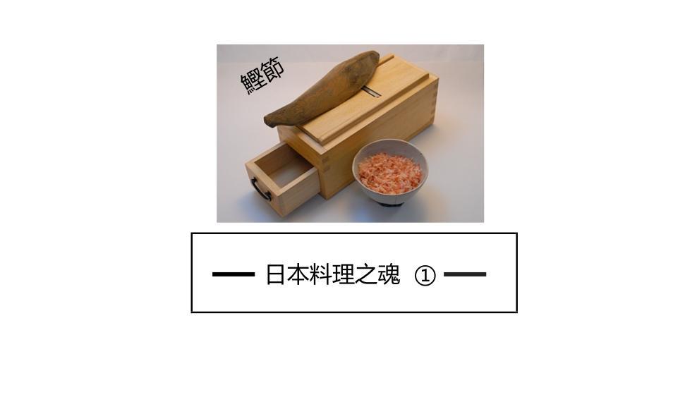 鲣鱼节的制作方法不同,其汤汁的味道和色泽也会随之变化。我们需要根据料理本身来挑选不同的鲣鱼节。“美味成分”要完美组合才能做出绝世美味。所以组合非常重要。鲣鱼节产生的美味成分是次黄甙酸,生的鲣鱼富含的次黄甙酸成分极少,经过煮、熏烤、干燥才赋予了鲣鱼更多的美味成分。所以鲣鱼节的美味成分除了次黄甙酸以外,富含20种以上的氨基酸成分。是日本料理的“魂”!