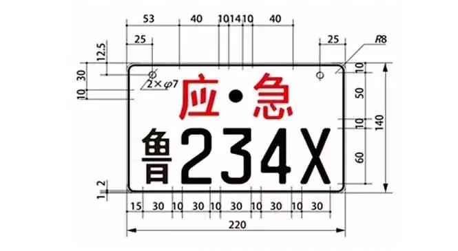 摩托车号牌规格为220毫米×140毫米,如下图。