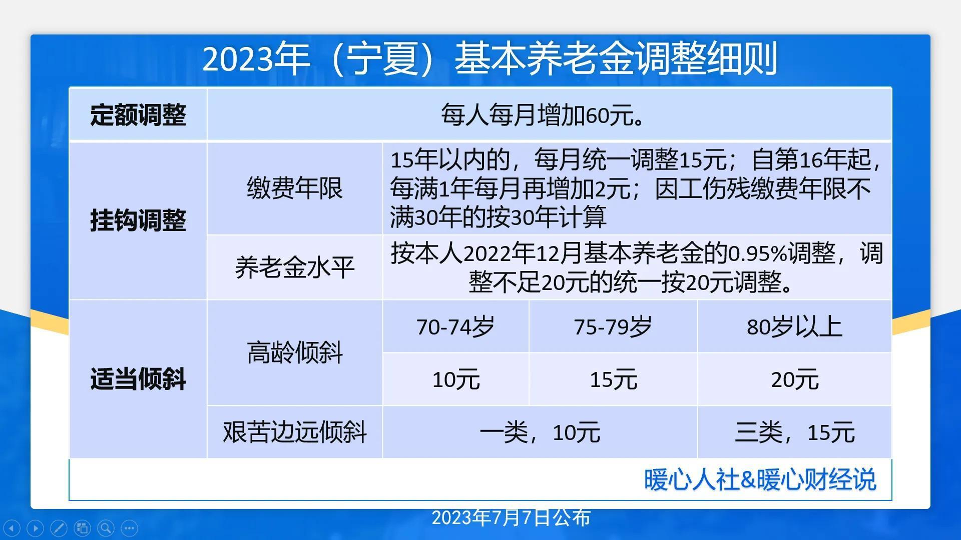 宁夏自治区是全国第一个公布养老金调整方案的地区。定额调整标准为每人每月增加60元,按缴费年限调整为15年及以内的部分增加15元,从第16年起,每满一年增加基本养老金两元。按养老金水平调整,为增加本人基本养老金的0.95%。因此增加的养老金钱数是65元+45元+28.5元,合计增加138.5元。