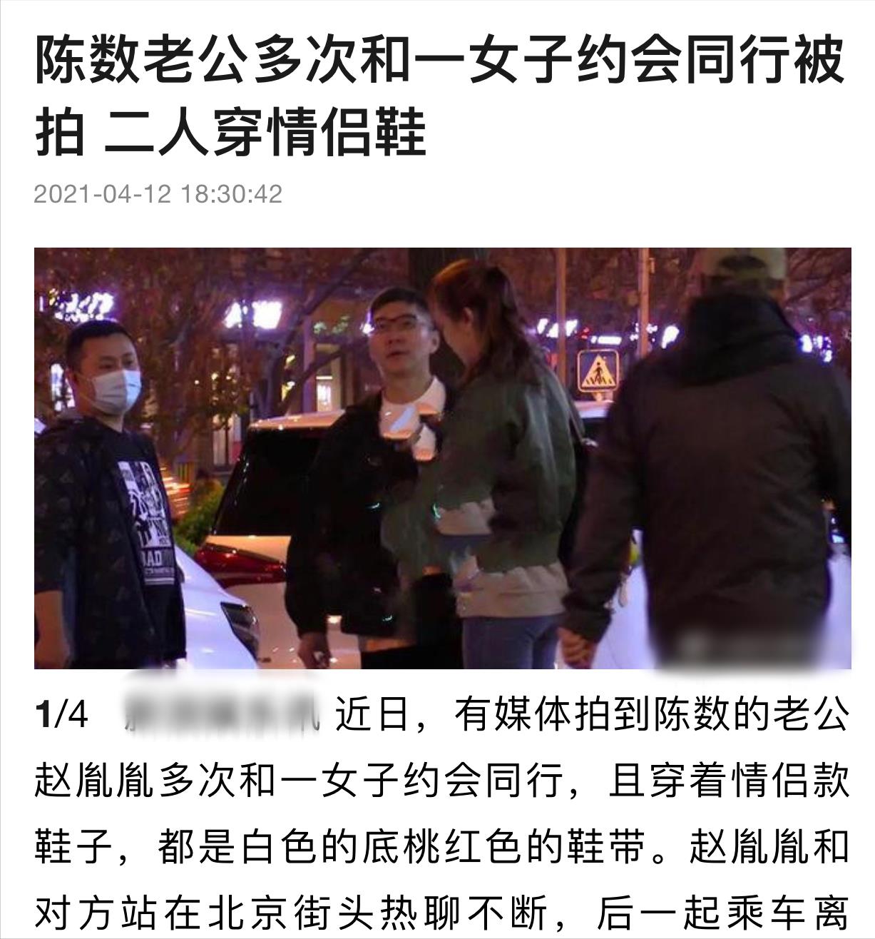 在去年,陈数丈夫又被曝出和一陌生女子约会,记者多次拍到两人有说有笑的照片。画面中,两人还穿着情侣鞋,深夜一起闲逛,随后更是一同坐车离开。