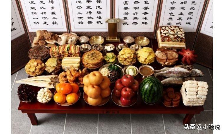 春节这天早上,韩国人早早起床,穿好韩服,祭祀祖先,并且要准备摆满了各种贡品的祭祀桌。