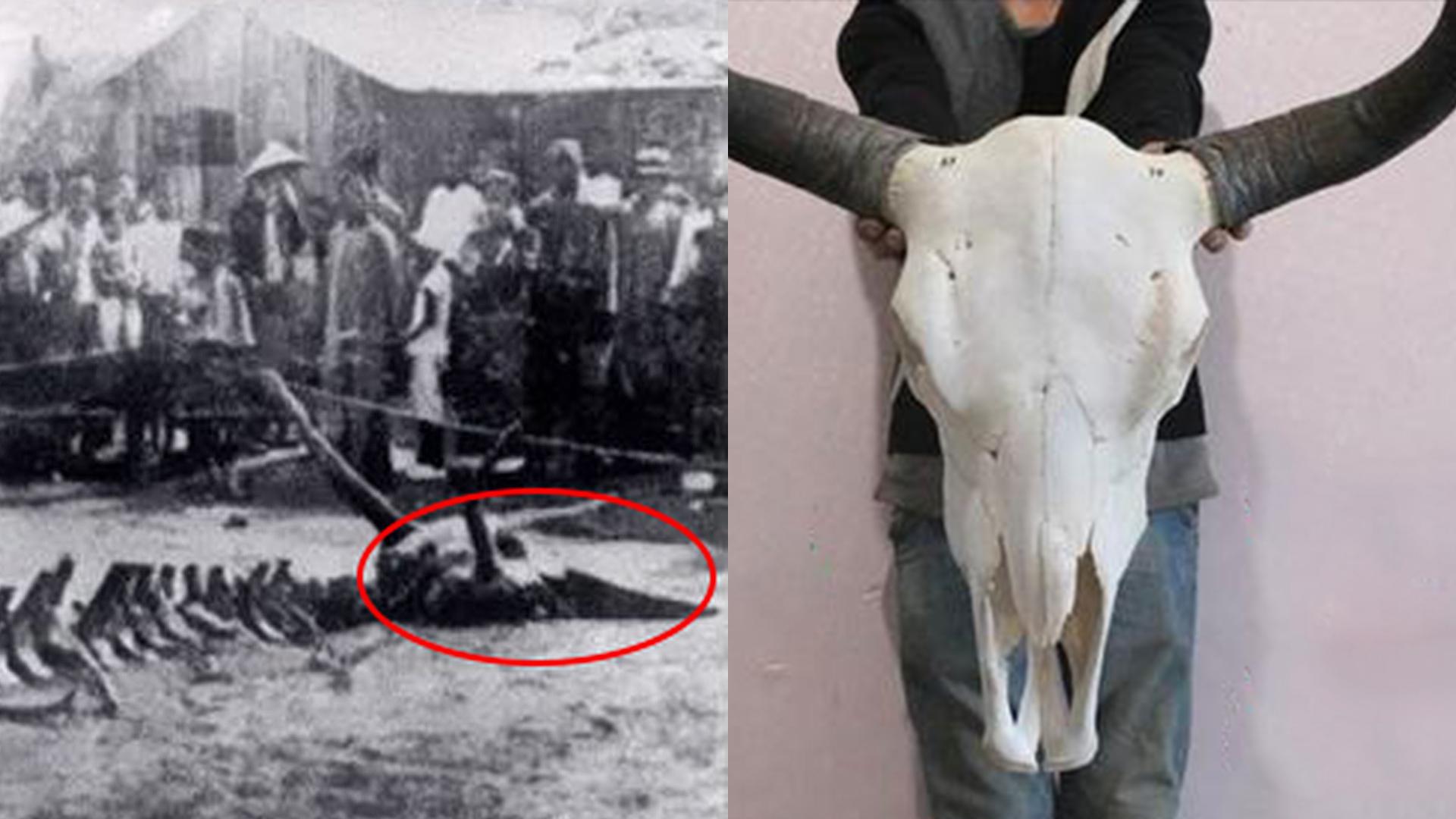 再来说说这个故事中的其他漏洞,仅凭当时的报纸一面之词,可信度又会有多少呢?毕竟当时的《盛京时报》也是在ri 本人的掌控下,有谁亲眼看见或者有什么证据证明了这个未知生物是从天上掉下来的呢?又有什么证据能证明,它当时的本来面目呢?如果单纯地说这个报纸中的骨骼图片的话,其实非常的好伪造,可以看一下这个头骨部分,再来看一下牛的头骨,是不是有些相近呢?