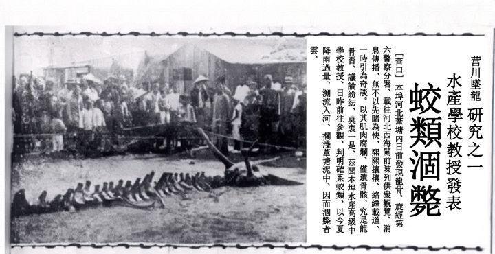 我们先来重新回顾一下营口坠龙事件,其实这个事件很多人都知道,也是迄今为止人们讨论很多的一个关于龙,是否存在的事件,传说发生在1934年的营口地区,连续的天降大雨,后来人们在一个芦苇荡中发现了一个不明生物的尸骸,是在距离辽河入海口10公里左右,这件事先后也被很多媒体报道过,当时给出的答案是须鲸搁浅,渔民将骨骼放错了位置,导致大家误以为是传说中的“龙”类,我们先不管“龙”是否存在,先来验证一下上面的说法,据当时的《北方晨报》报道,此生物脊骨28节,而目前已知的须鲸脊骨有56节,单从这一点上来看,就完全不符合。