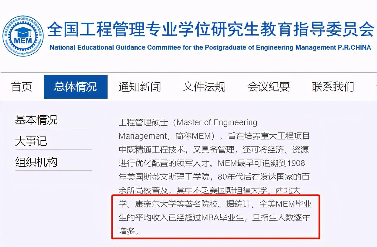 MEM起源于美国,是因为国务院学位委员会看中其在工程及经济领域的培养价值,于2010年设置了工程管理硕士专业学位。