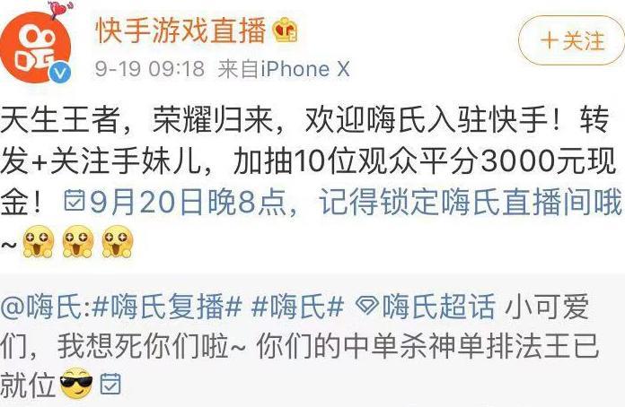 好在现如今他们再也不用着急了,因为快手游戏直播官方发布声明了:嗨氏会在9月20日晚上再快手平台直播。相信收到这个消息的粉丝肯定会很高兴了吧,到时候直播间肯定又是人满为患的场景。毕竟嗨氏停播了那么久,粉丝们都已经迫不及待地要在看到他了,这个思念之情肯定会化为极高的人气。