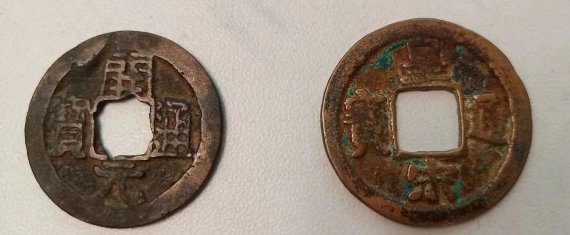 另外还购买了两枚古币,一枚是唐代的开元通宝,一枚是宋代的皇宋通宝,10元一枚。老板很热情,详细的跟我们讲述着古币的知识。开元通宝这几个字是唐代著名的书法家欧阳询书写的,唐高祖武德四年(公元621年)开始铸造的,距今已经有1400年了。皇宋通宝是北宋时期钱币,有一种九叠篆书写的,极为罕见珍贵,我买的这枚是普通的楷书,是宋太宗赵昊亲笔。大家来辨辨真假吧。