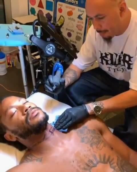 直播吧8月1日讯 根据文身艺术家Jose Guijosa的Instagram,活塞球星德里克-罗斯在自己的脖颈处新添了一处文身:“God Speed”。