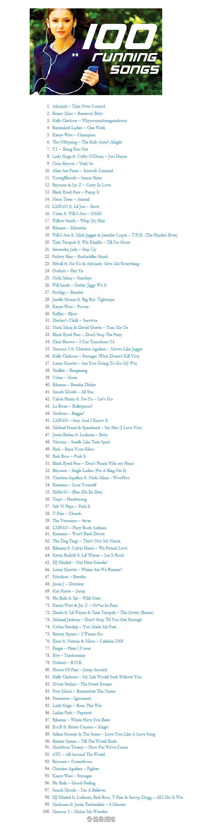 100首最具人气的跑步歌曲 !(边听边跑,先收藏)