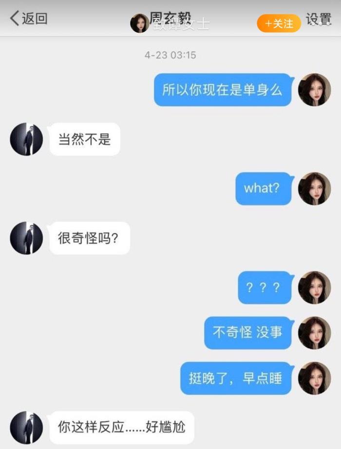 谭女士晒出的聊天记录表明,她在初识时已经问过周玄毅是否单身,对方承认有女友。