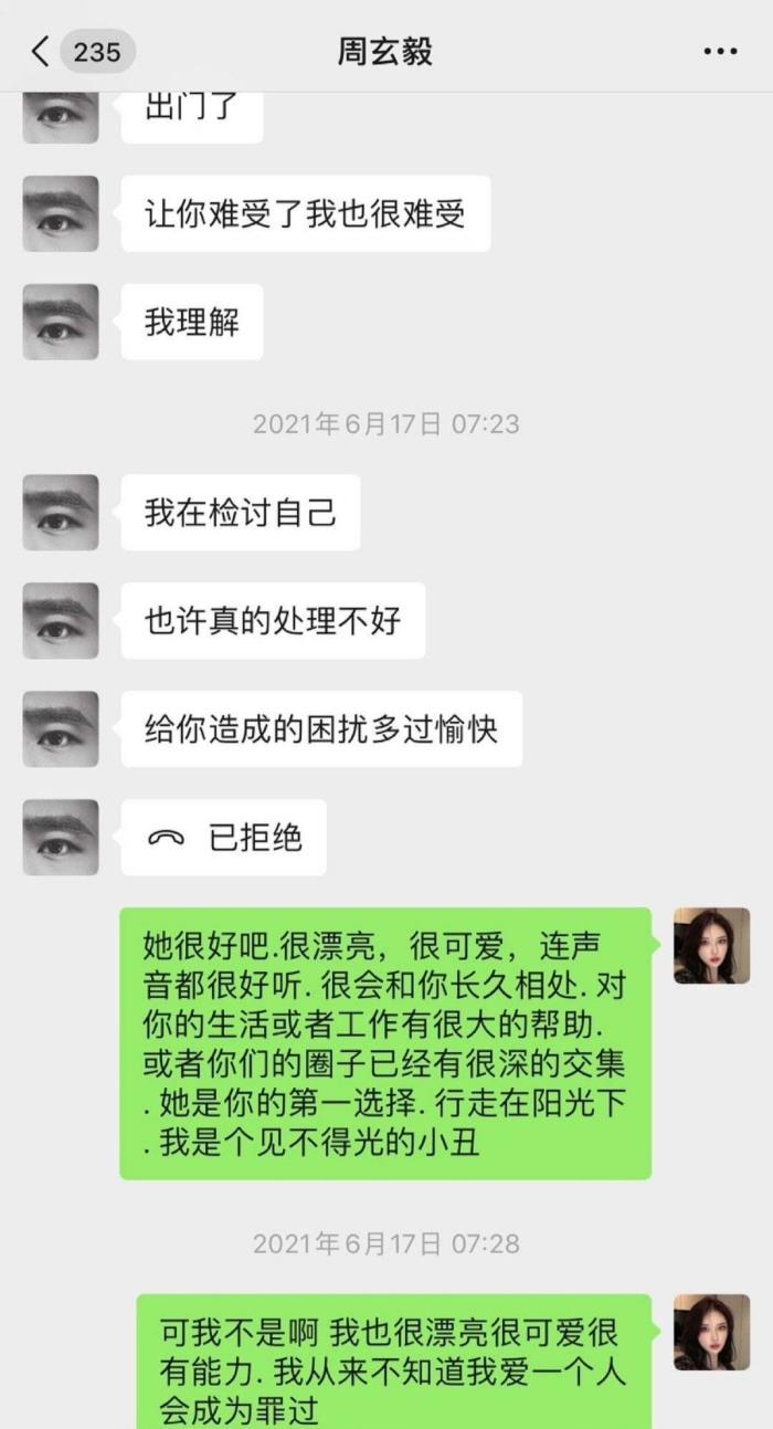 随后谭女士发现周玄毅私生活混乱,除了正牌女友之外,还与比自己小十几岁的j姓粉丝等多位女性保持关系。同时,他们被路人拍下亲密照片,周玄毅开始逃避实施冷暴力,谭女士觉得自己被骗,所以提出分手。