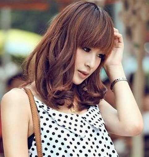 齐刘海和中长梨花烫发型搭配,发尾的蓬松空气感既修颜又能增加可爱感,其实齐刘海和梨花烫的发型很搭,出来的效果会更甜美可爱,婴儿肥的女生可以尝试一下。