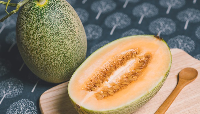 哈密瓜,性寒味甘,含蛋白质、膳食纤维、胡萝卜素、果胶、糖类、维生素A、维生素B、维生素C、磷、钠、钾 等。哈密瓜香甜可口,果肉细腻,而且果肉愈靠近种子处,甜度越高,愈靠近果皮越硬,因此皮最好削厚一点,吃起来更美味。