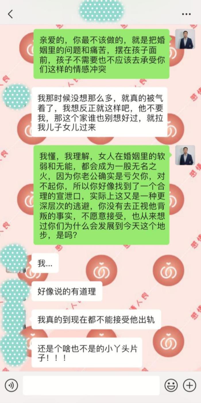 在她主动找到我们,我们也为她分析出了真正的问题之后,她选择了在婚姻挽回,关系修复方面擅长的林夕老师,来帮助自己挽回婚姻。