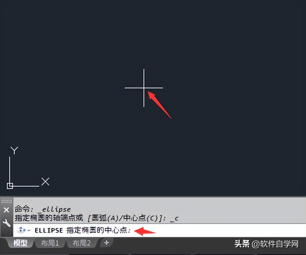 第1步、点击椭圆工具,点击圆心的方法。或是直接在命令框里面输入EL椭圆命令。
