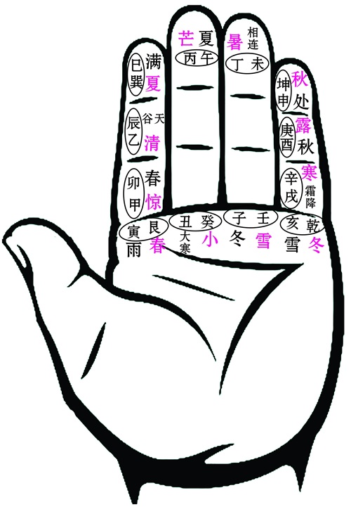 用二十四节气对应二十四山掌诀推算天帝到山方法
